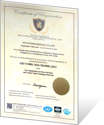 NTE已经取得ISO9001 : 2015,UL,CUL,CE,ROHS & REACH质量证书,并且有足够能力可提供高质量的产品给客户。